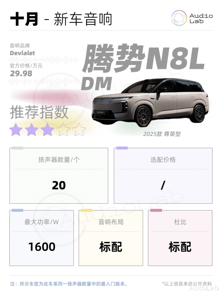 所以腾势N8L这次的音响,依然还是帝瓦雷20个扬声器这个固定搭配。